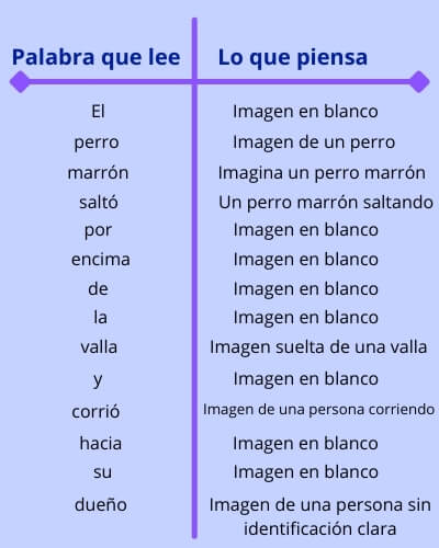 Siempre que leemos una frase buscamos en nuestro diccionario mental la imagen que representa cada palabra para ponerlas juntas y que tengan sentido en el contexto de la oración completa.