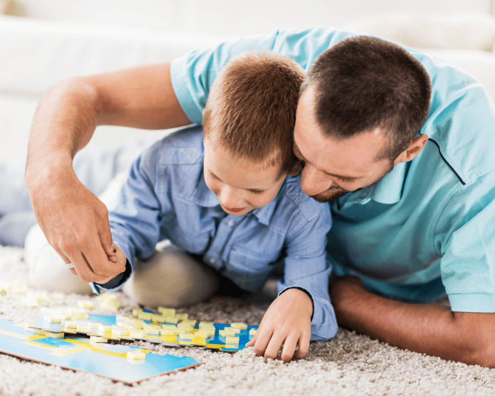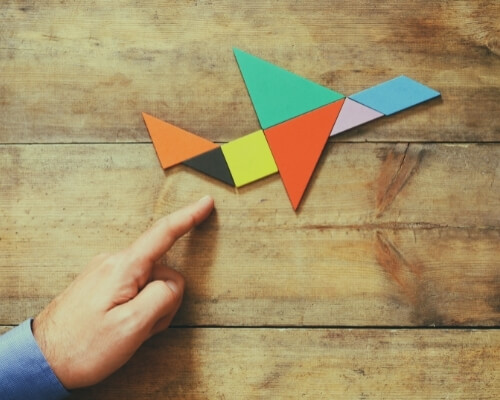 El niño debe replicar una figura con distintas piezas geométricas de distintos colores. Las figuras a imitar pueden representar figuras, letras o números.